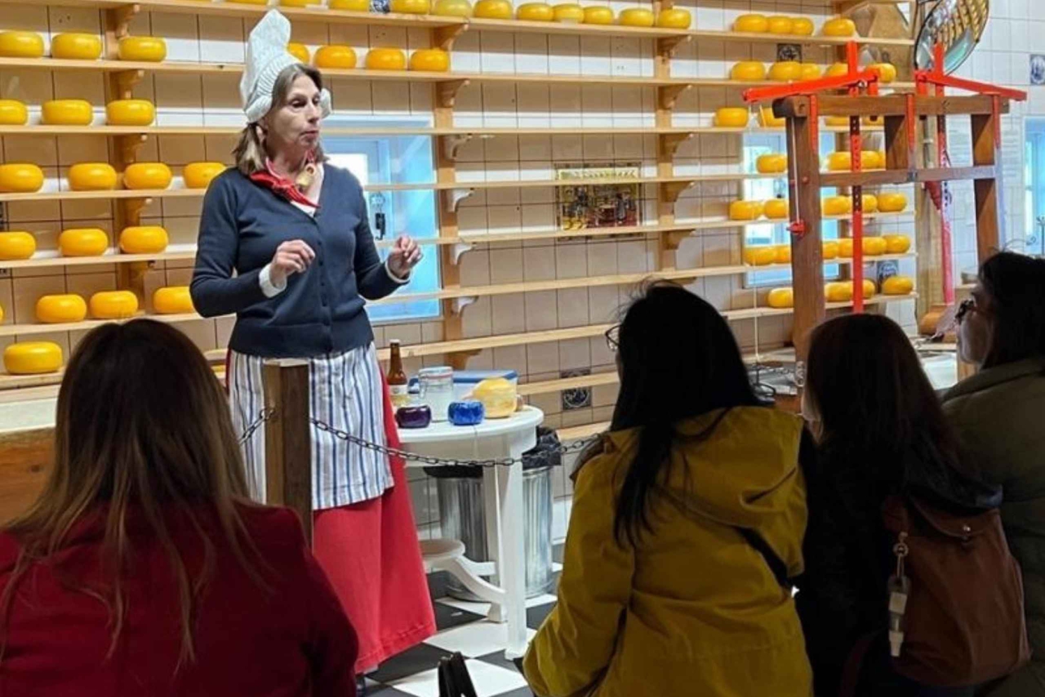 Oplev den eventyrlige landsby Giethoorn og de maleriske vindmøller i Zaanse Schans på en guidet tur. Nyd kanalrundfarten og besøg en ostefarm og træskofabrik i en hollandsk landsby.
