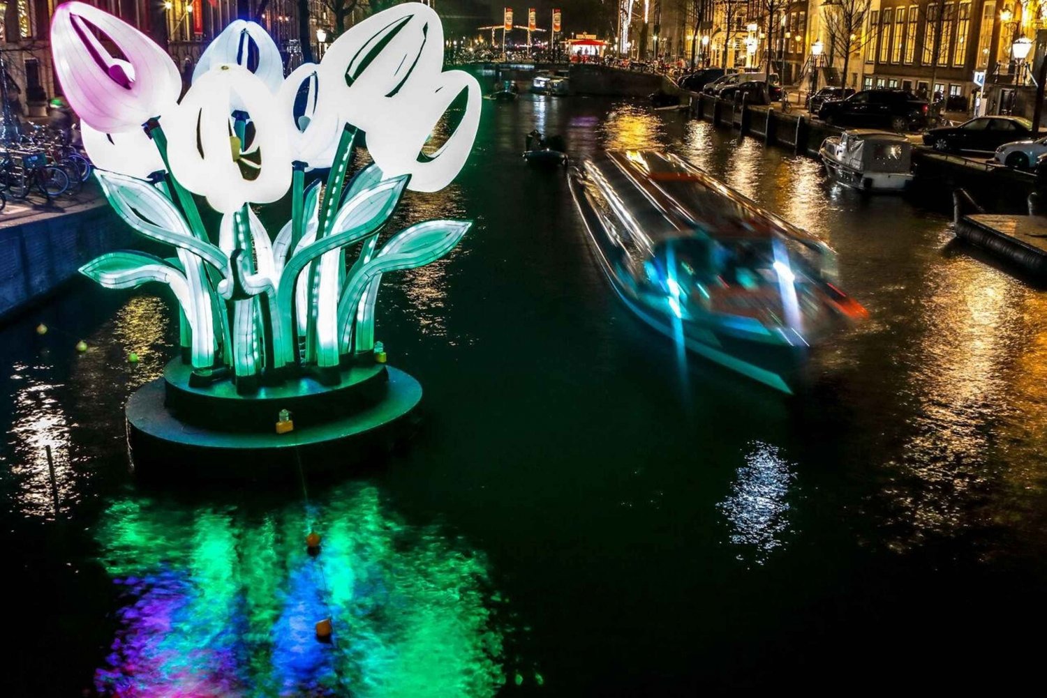 Amsterdam: Lysfestivalbådtur med ubegrænsede drikkevarer og snacks