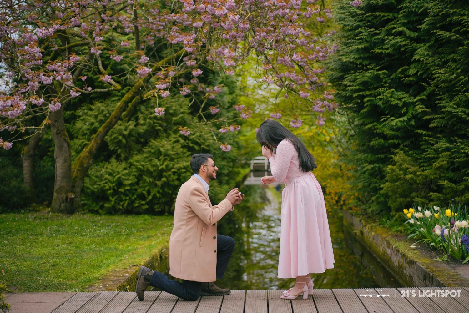 Ankom til det udpegede sted, hvor fotografen vil være klar til at fange det overraskende frieri.