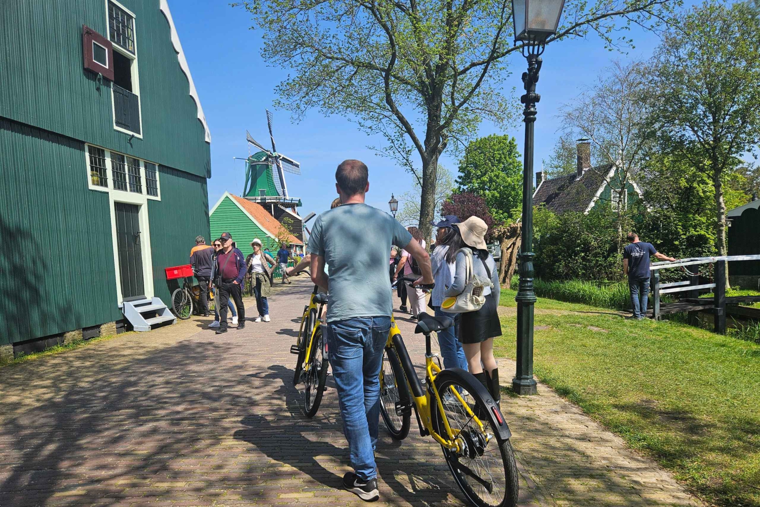 Besøg den berømte Zaanse Schans med hollandske vindmøller, en træskofabrikant og en ostegård på denne dagsudflugt på elcykel.