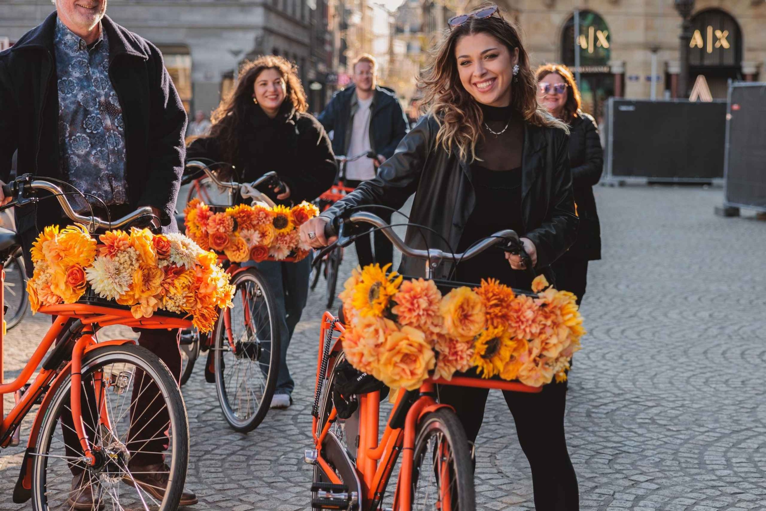 Triff deinen Guide und hol dein Fahrrad ab. Dann begibst du dich auf eine Reise zu den berühmtesten Sehenswürdigkeiten und durch die pulsierenden Stadtviertel von Amsterdam. Unterwegs machst du mehrere Stopps, die perfekt sind, um Erinnerungen und Fotos festzuhalten, während du faszinierende Geschichten über Amsterdams reiche Geschichte, Architektur und Traditionen teilst.