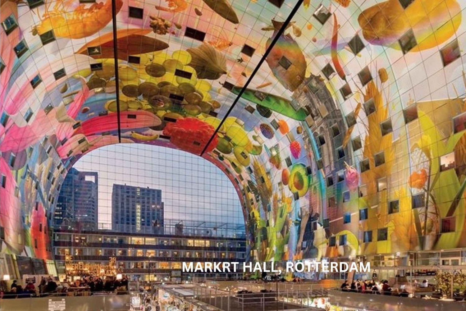 Modernes Gebäude auf einem der größten Plätze Rotterdams in Form eines Hufeisens - ein geschlossener Markt, kombiniert mit Wohnraum und Einrichtungen, auch 'Die Sixtinische Kapelle von Rotterdam' genannt.