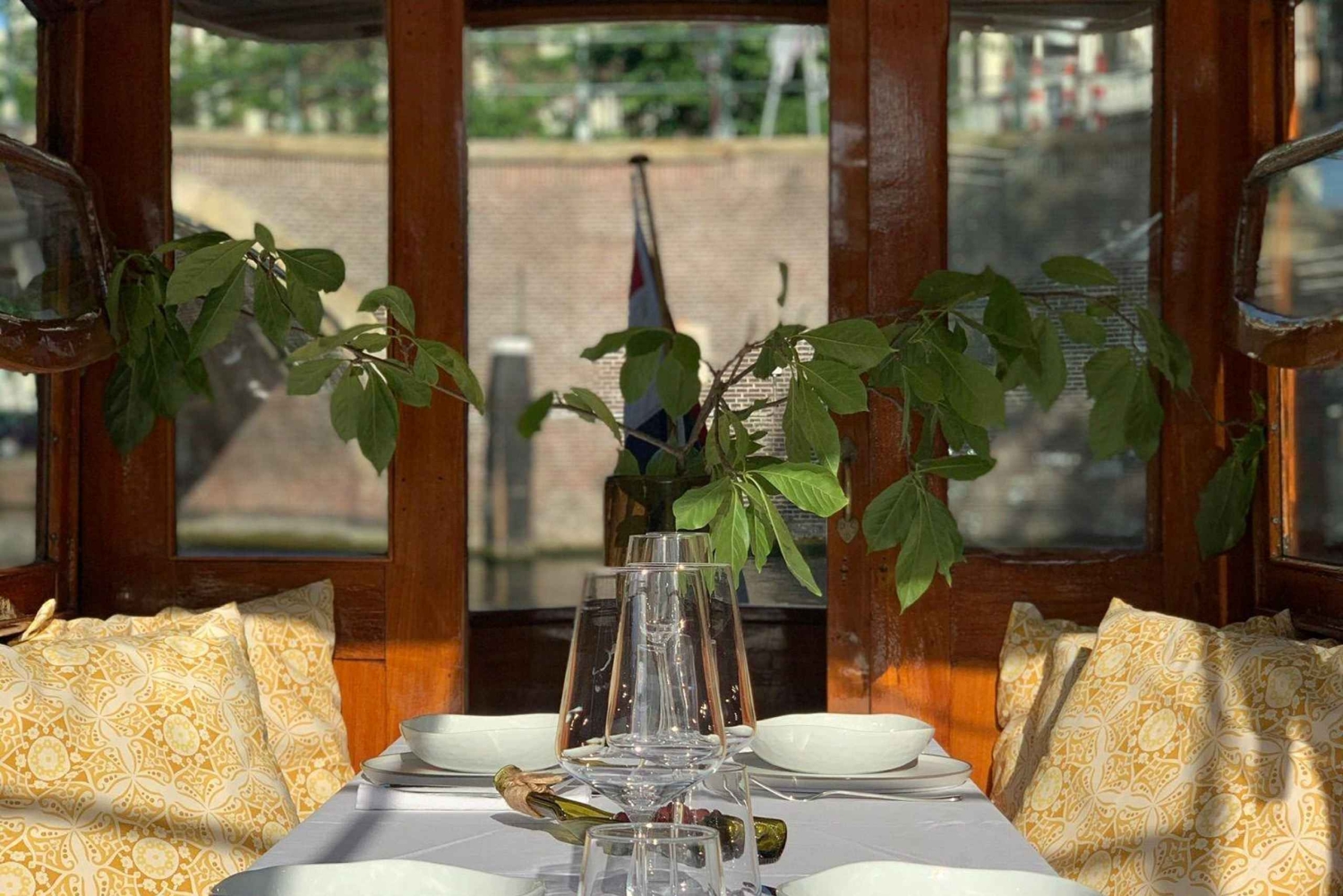 Disfruta de una cena privada de dos platos en un crucero por los canales de Ámsterdam. Saborea una comida gourmet, elige tus bebidas (opcionales y se pagan a bordo) y aprende sobre la historia de la ciudad con tu guía.