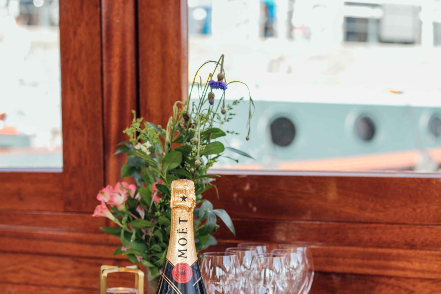 Risteile 2,15 tuntia valaistun, historiallisen Amsterdamin keskustan läpi täysin kunnostetulla, lämmitetyllä salonkiveneellä. Odotettavissa on ylelliset istuimet, kynttilävalaistut pöydät, kukka-asetelmat ja immersiivinen Moët & Chandon -brändäys – todella elegantti kelluva ruokasali.