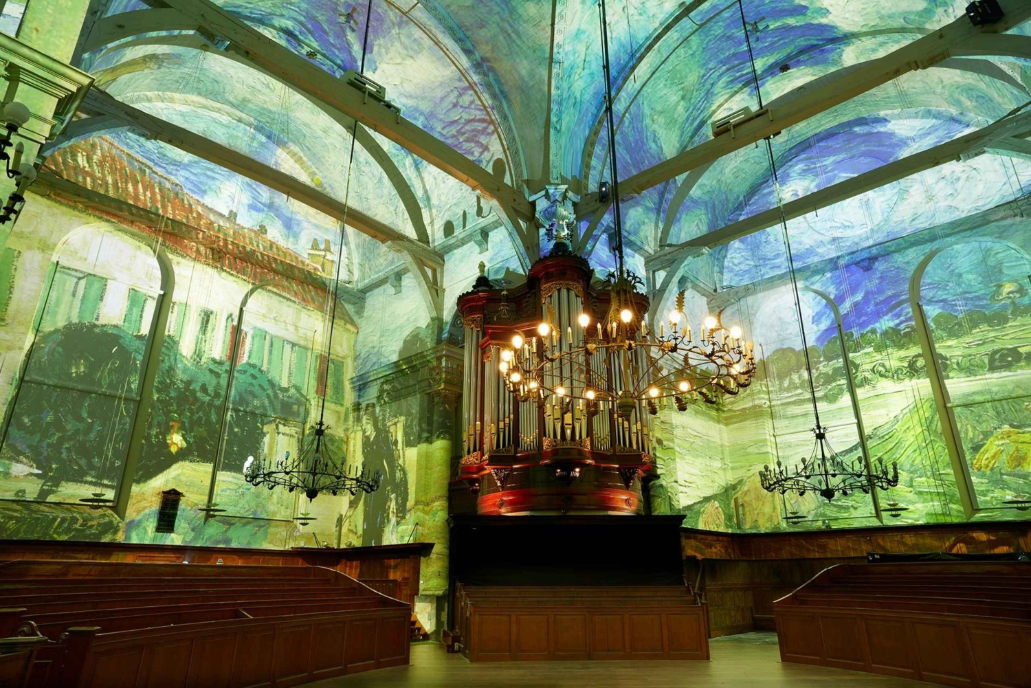 Astu Amsterdamin majesteettiseen Noorderkerkin kirkkoon ja anna 360 asteen liikkuvan visuaalisen kokemuksen ympäröidä itsesi. Tämä ei ole vain näyttely, tai ainakaan ei mikään tavallinen näyttely. Tämä valo- ja ääniesitys muuttaa täysin tämän historiallisen monumentin sisätilat ja peittää sen seinät kauniilla kuvilla. Jos etsit ainutlaatuista päivänviettoa, Van Gogh ja Rembrandt -esitys on elämys sinulle!