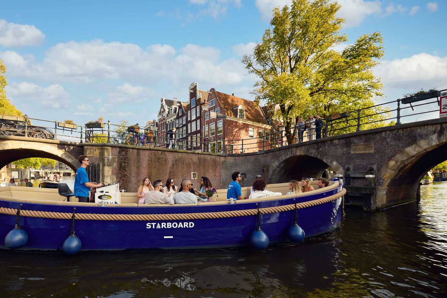 Découvrez la beauté époustouflante des canaux emblématiques d'Amsterdam lors d'une visite guidée en bateau. Montez à bord d'un bateau électrique ouvert ou fermé avec un hôte local et découvrez les sites célèbres d'Amsterdam.