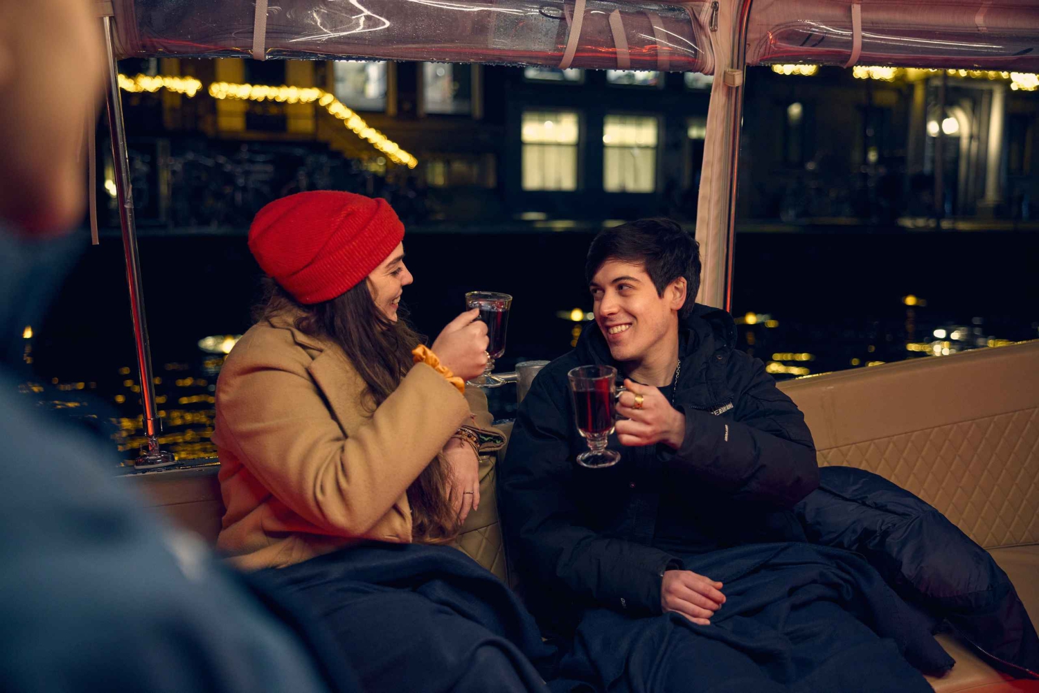 Avvolgiti in una coperta, sorseggia il tuo drink e guarda Amsterdam illuminarsi dalla comodità della tua barca. È il modo perfetto per godersi il festival e la città durante la stagione invernale.