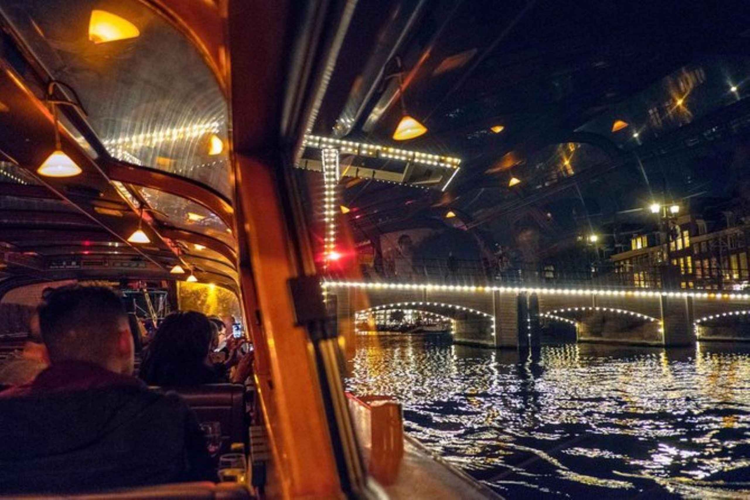 Goditi una bevanda alcolica/analcolica e degli snack caldi mentre navighi di notte sui canali.