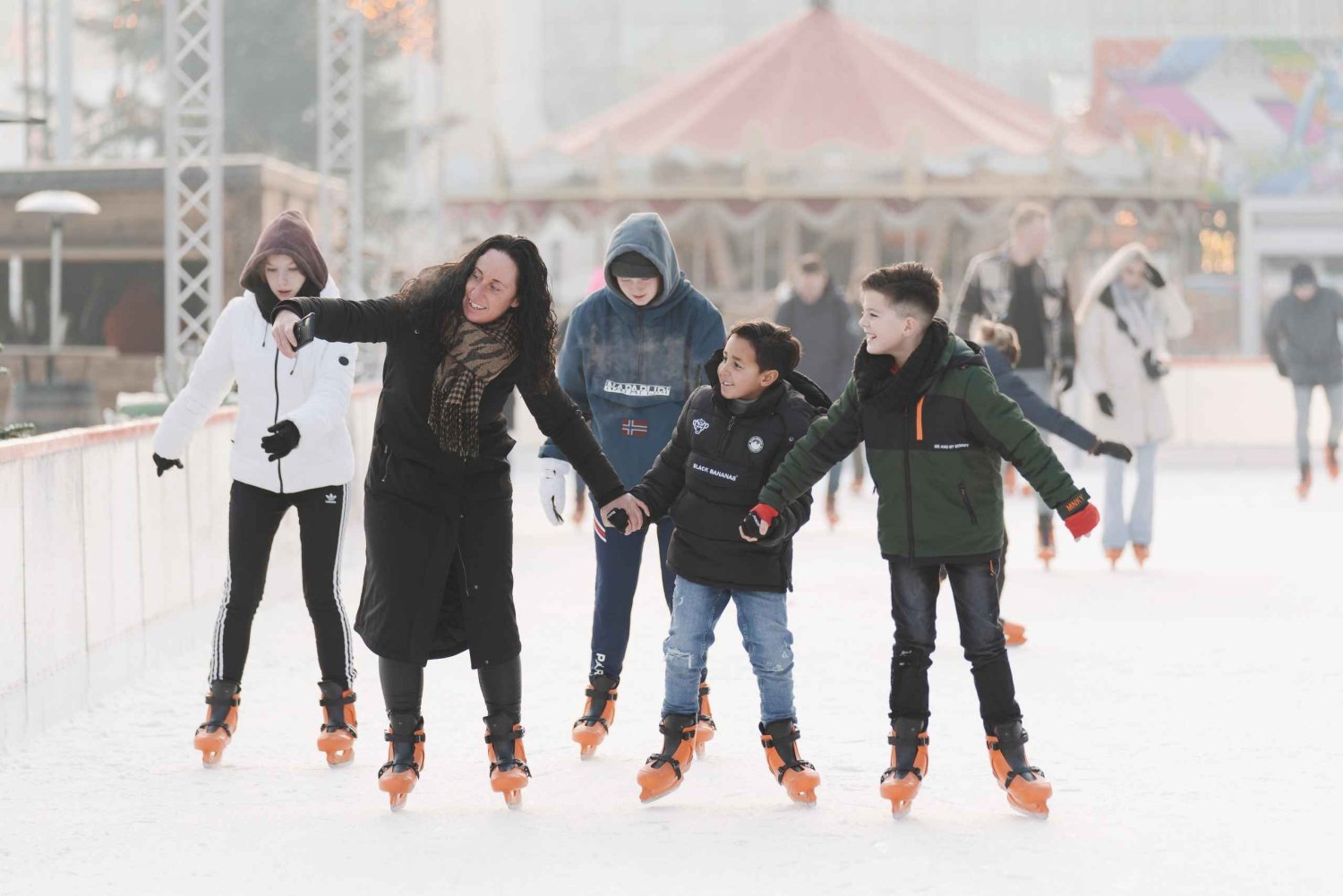Che tu sia un pattinatore esperto o un principiante, la pista offre un'esperienza unica. Noleggia i pattini in loco o porta i tuoi (non sono ammessi pattini da velocità). Goditi l'atmosfera festosa, completa di cioccolata calda, nasi freddi e la speciale atmosfera del pattinaggio nel cuore di Amsterdam.