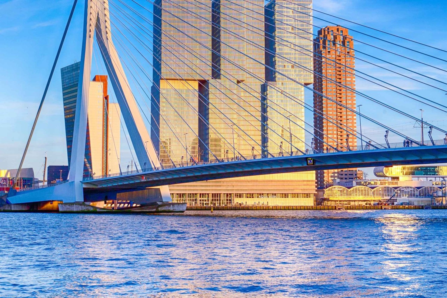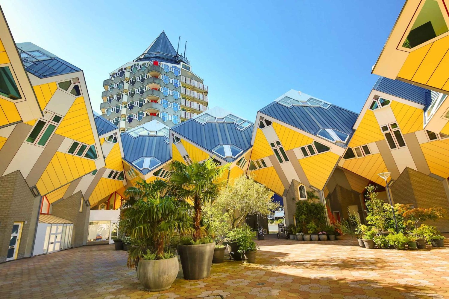Con tre ore a disposizione per esplorare Rotterdam al tuo ritmo e con orari flessibili, inizia visitando le Case Cubo (Kijk-Kubus), dove potrai ammirare le case a forma di cubo inclinate e uniche nel loro genere ed esplorare anche il Museo Show-Cube. Poi, recati al Markthal, un moderno mercato al coperto pieno di bancarelle e ristoranti, perfetto per uno spuntino veloce o per una piacevole esplorazione. In seguito, fai una passeggiata fino allo storico Oude Haven (Porto Vecchio), dove potrai gustare un pranzo rilassante in uno dei tanti caffè sul lungomare, immergendoti nell'atmosfera marittima. Termina il tuo tour con una passeggiata sul Ponte Erasmus, che offre una splendida vista panoramica sullo skyline della città e sul fiume Maas.