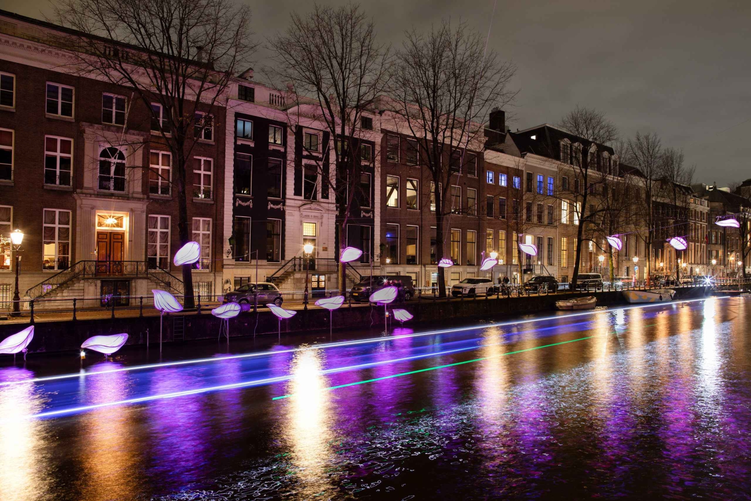 冬の短い昼と長い暗い夜、アムステルダムは魔法と驚きに満ちた場所になる。23の光のアート作品が、電動ボートに乗って市内の運河とその周辺で上映される。