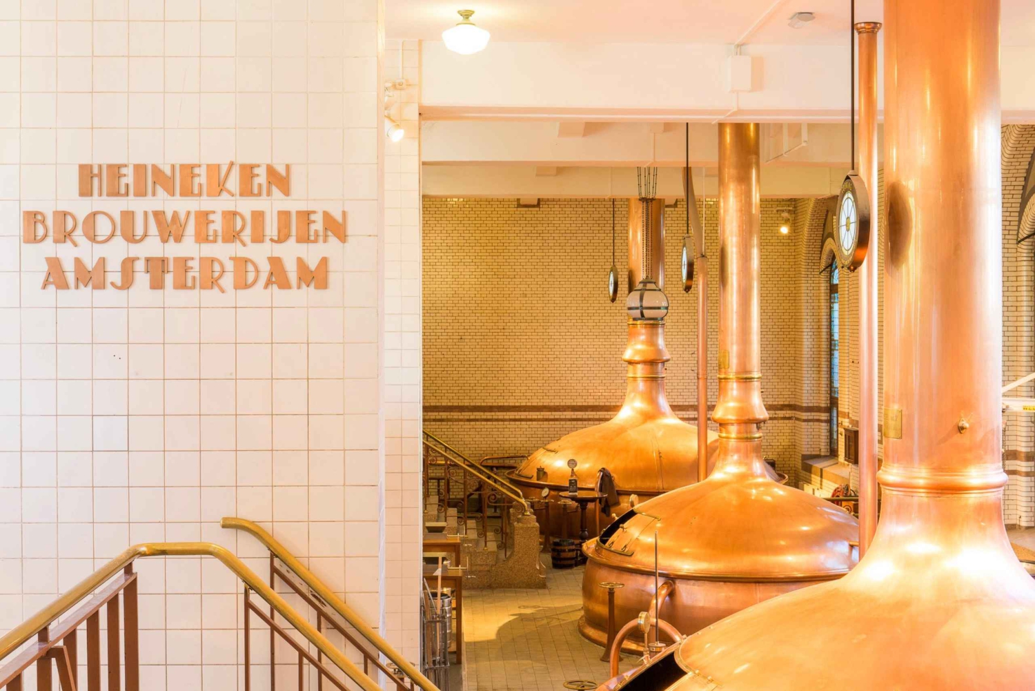 ガイド付きシティツアーで、アムステルダムの象徴的な街並みと隠れた名所を探索してください。最後に、ハイネケンブルワリーの屋上への特別アクセスで、絶景を望みながら2杯のビールを無料で楽しめます。