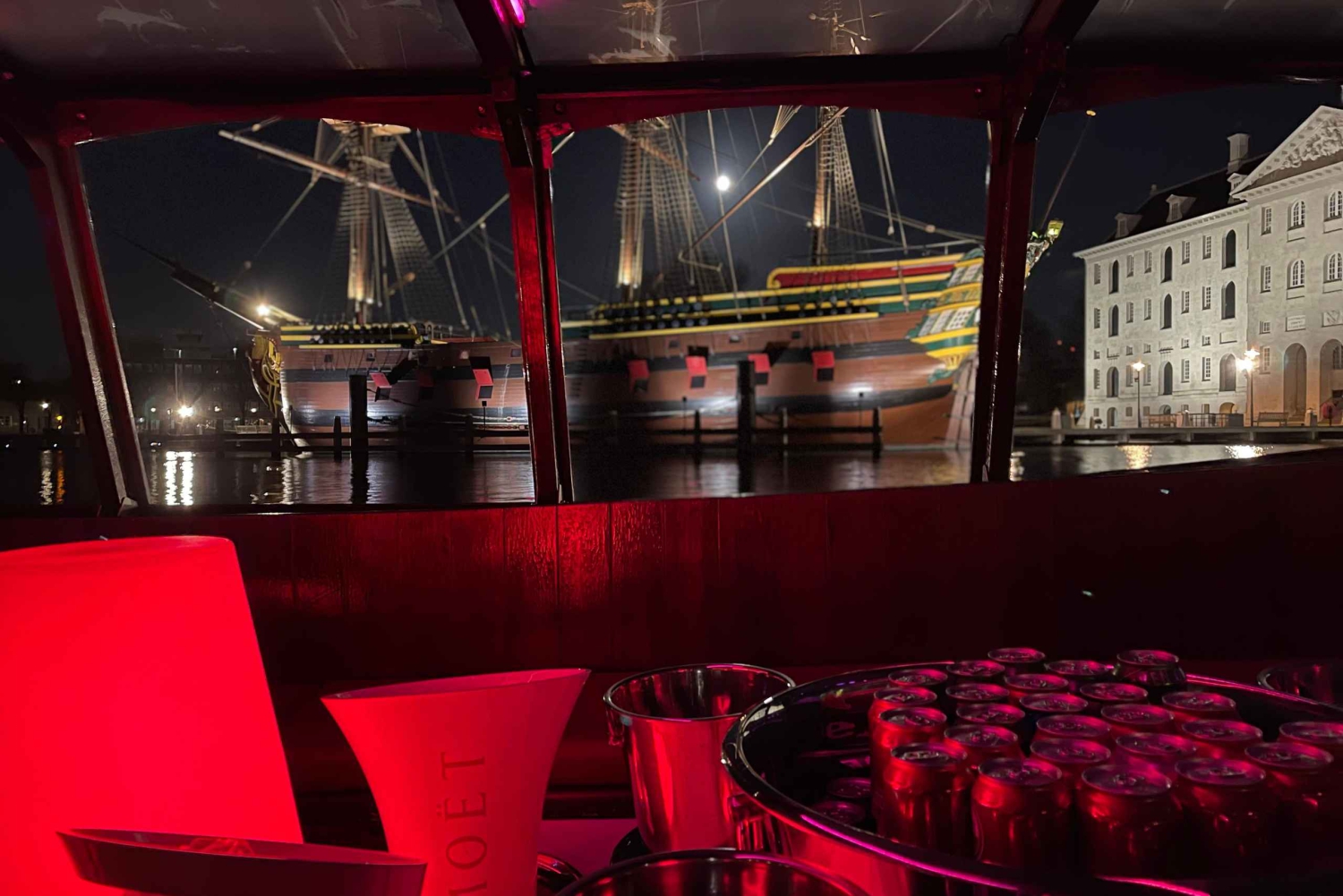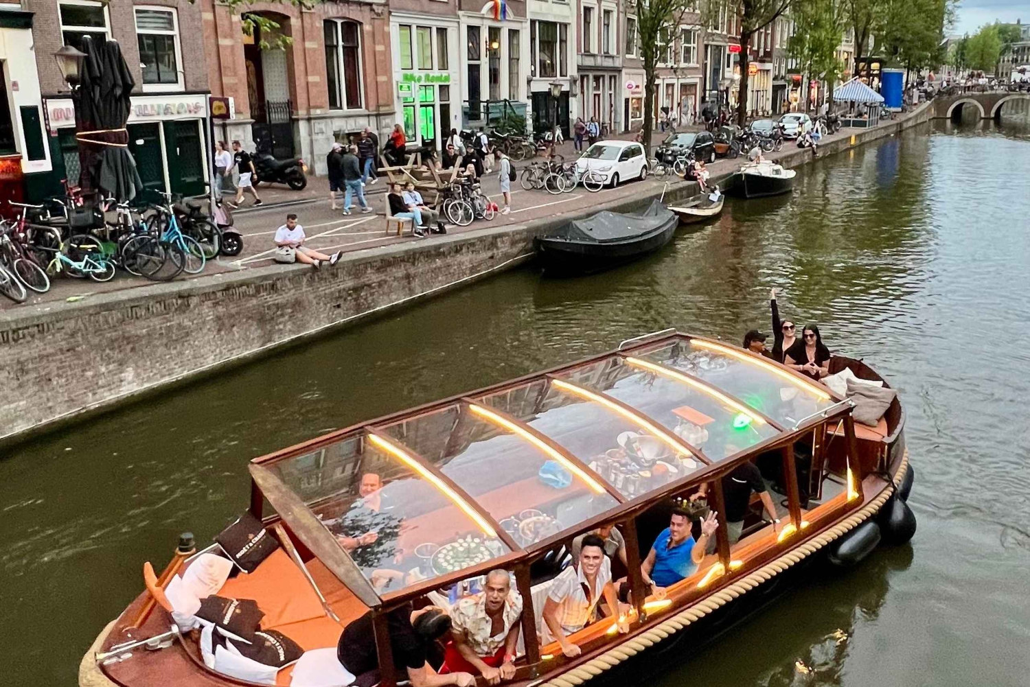 Vaar door het kleurrijke nachtleven van Amsterdam onder het genot van onbeperkt drankjes tijdens deze luxe rondleiding met gids door het grachtensysteem van de stad. Leer Amsterdam kennen vanuit het perspectief van een queer-vriendelijk, multicultureel team. Geniet van het uitzicht op historische bezienswaardigheden, middeleeuwse gebouwen en smalle grachten.