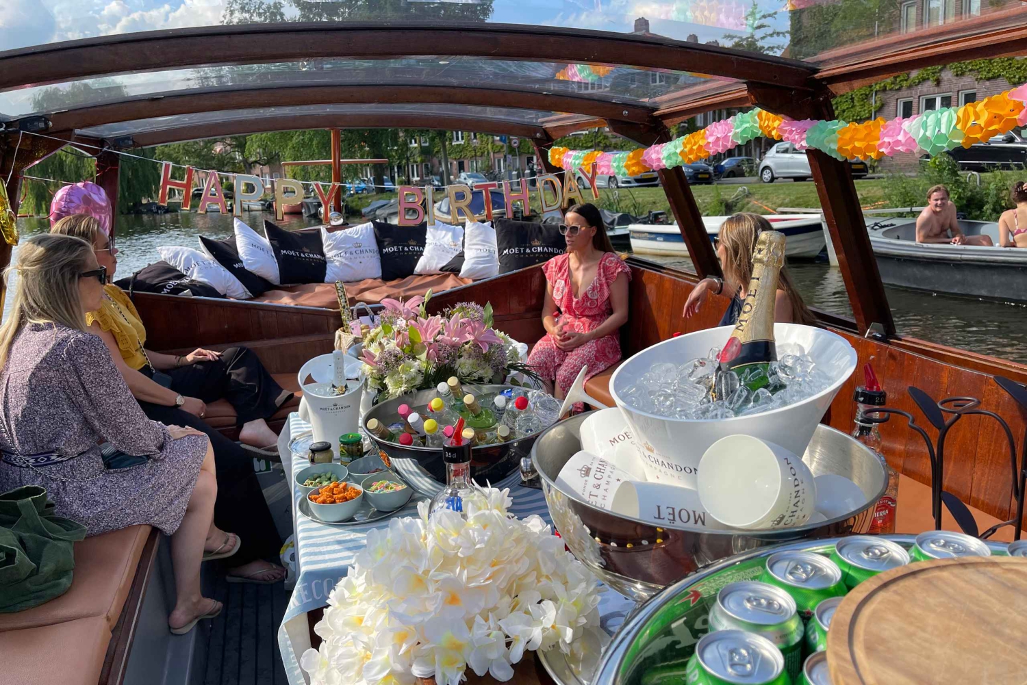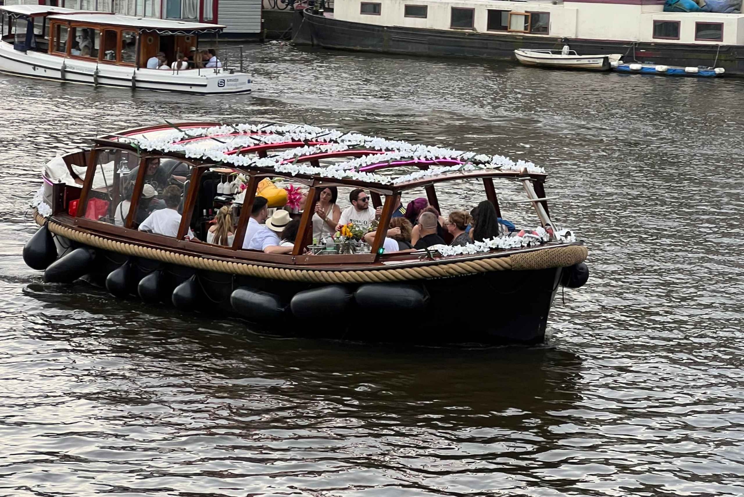 Bekijk Amsterdam vanuit een uniek gezichtspunt tijdens een rondleiding in een luxe boetiekboot inclusief onbeperkt drankjes. Leer meer over de stad in een leuke omgeving en vaar langs bekende bezienswaardigheden.