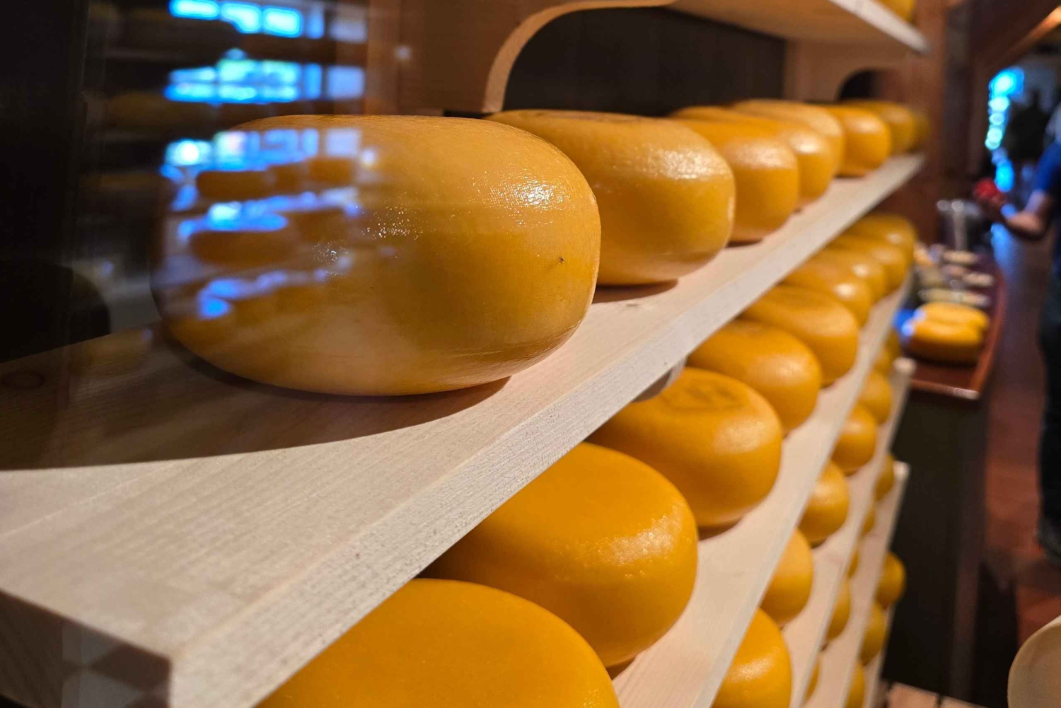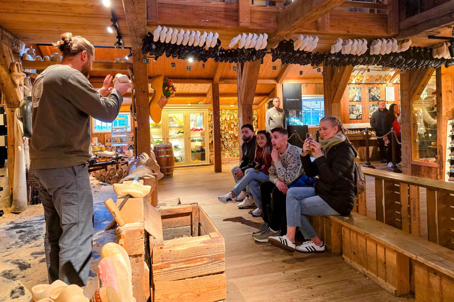 Tour in kleine groep: Ontdek de essentie van Nederland met een rondleiding door de Keukenhof Tuinen, Zaanse Schans en Volendam. Geniet van een demonstratie houten klompen maken, kaas proeven en koekjes proeven.