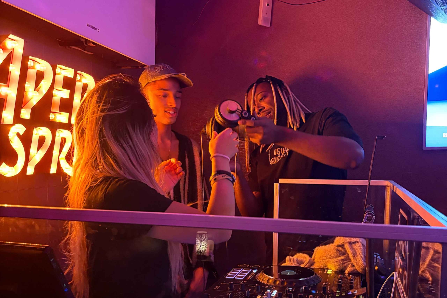 Rozpocznij od darmowego drinka, aby wczuć się w klimat, spotykając się w barze przed otwarciem dla publiczności. Zdobądź solidne podstawy DJ-owania, ucząc się podstaw rytmu i tworzenia własnych beatów. Następnie naucz się obsługi systemu Pioneer DJ, miksowania utworów i dopasowywania beatów jak profesjonalista. Na koniec zagraj utwór na deckach w kabinie DJ-a i poczuj emocje związane z byciem w centrum uwagi przed niewielką publicznością, gdy bar zostanie otwarty na wieczór. Zrób kilka kultowych selfie w kabinie DJ-a w słuchawkach — to chwila, której nie zapomnisz. Po sesji zejdź na dół, gdzie możesz napić się drinka w specjalnej, obniżonej cenie.