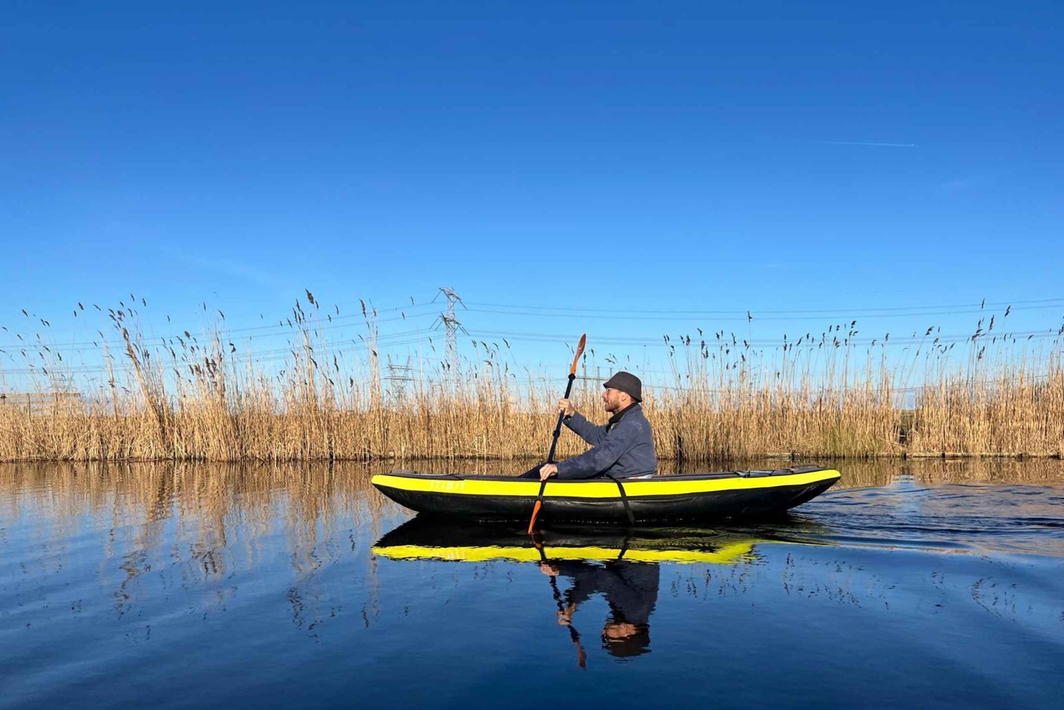 Spotkamy się przy Borneokade 16, gdzie znajdziesz mnie z grupą nadmuchiwanych kajaków na nabrzeżu. Po naprawdę dobrej kawie/herbacie/czekoladzie, stroopwafels dla dodania energii i kilku wskazówkach (ciesz się!), czego nie należy robić (nie głaszcz łabędzi!), ruszamy! Początek: Wschodnie Doki