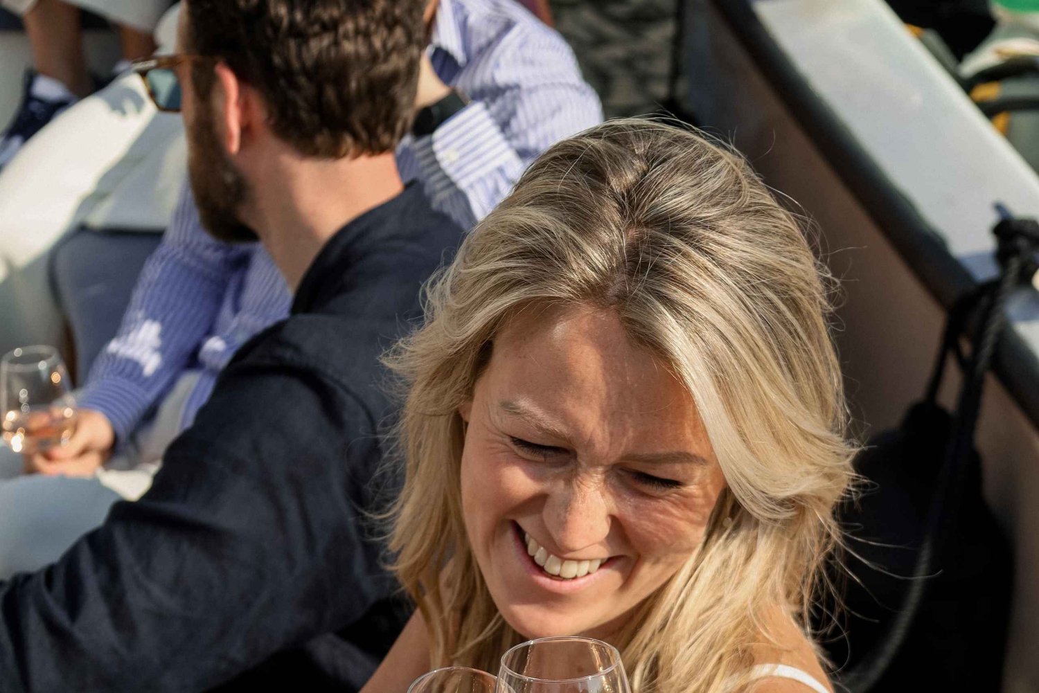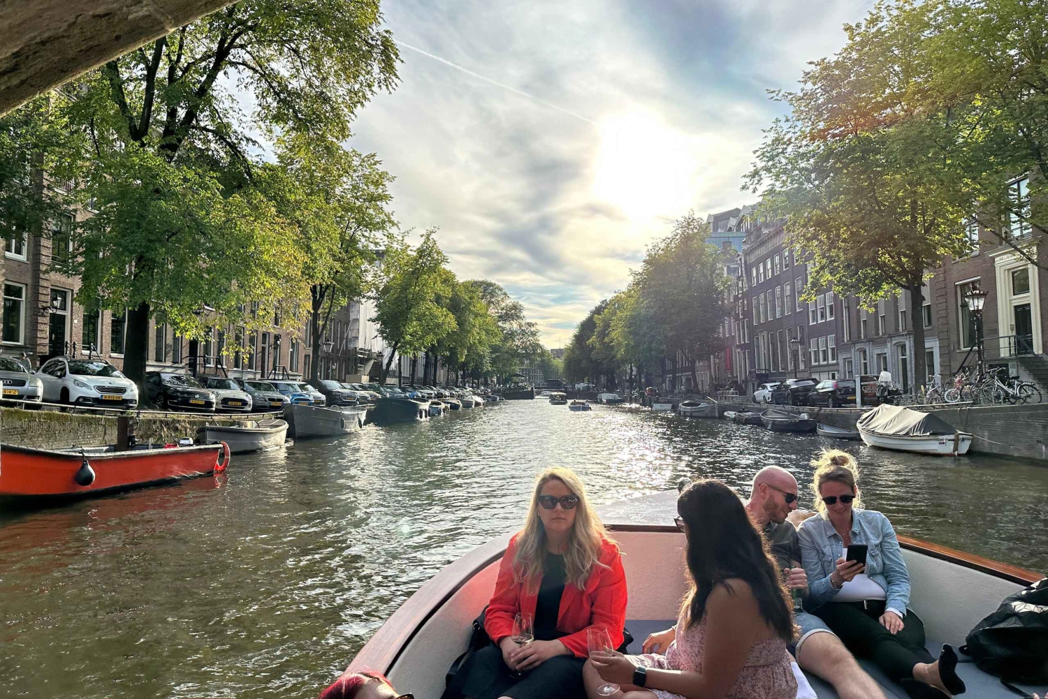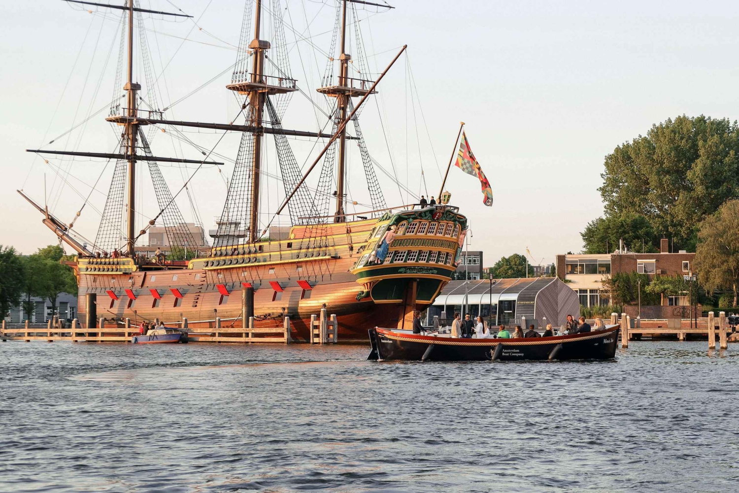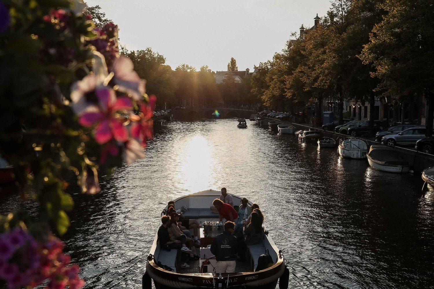 O sol no seu rosto, uma bebida gelada na sua mão, com vista para a bela arquitetura de Amsterdã. Com esse saveiro elétrico, você navega silenciosamente pelos canais de Amsterdã. Com um capitão e uma anfitriã particulares, você pode desfrutar plenamente de toda a beleza que Amsterdã tem a oferecer.
