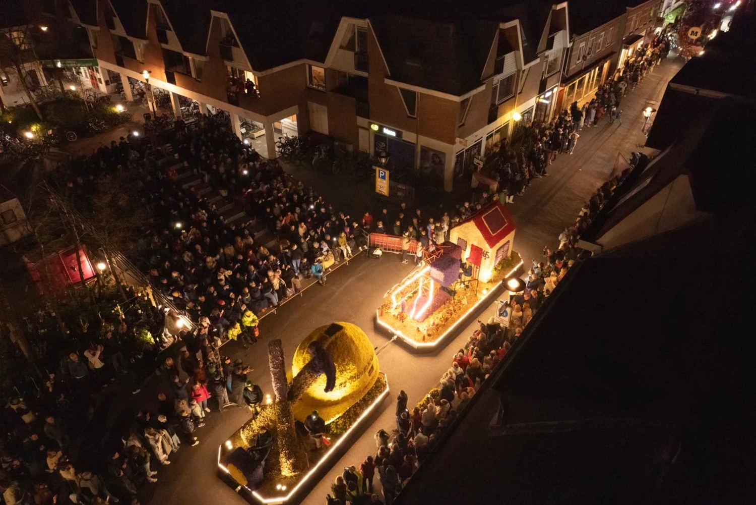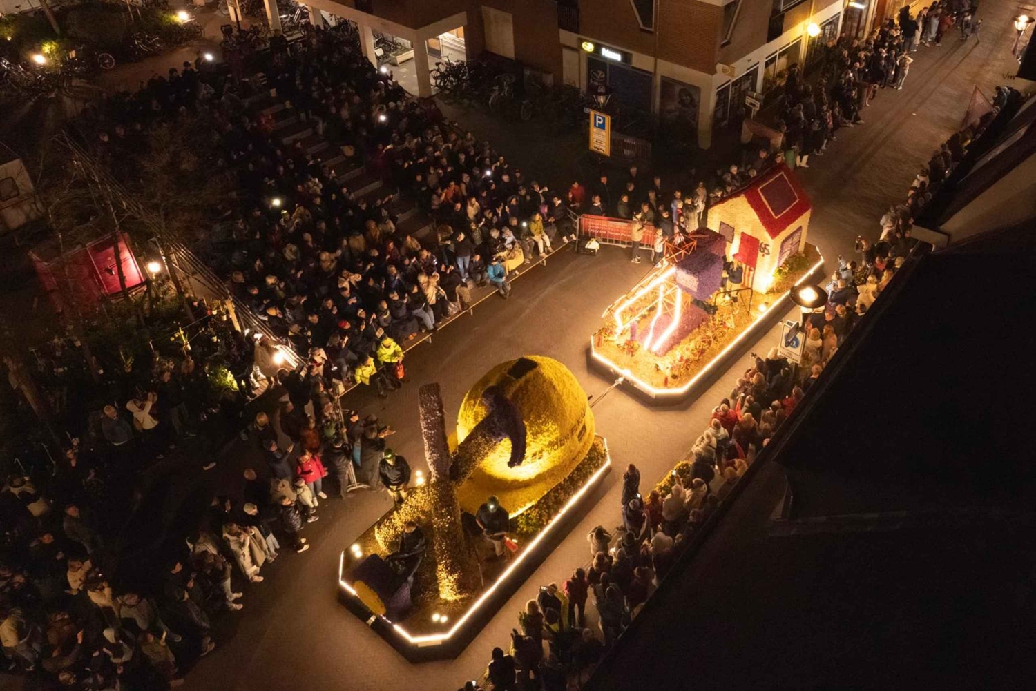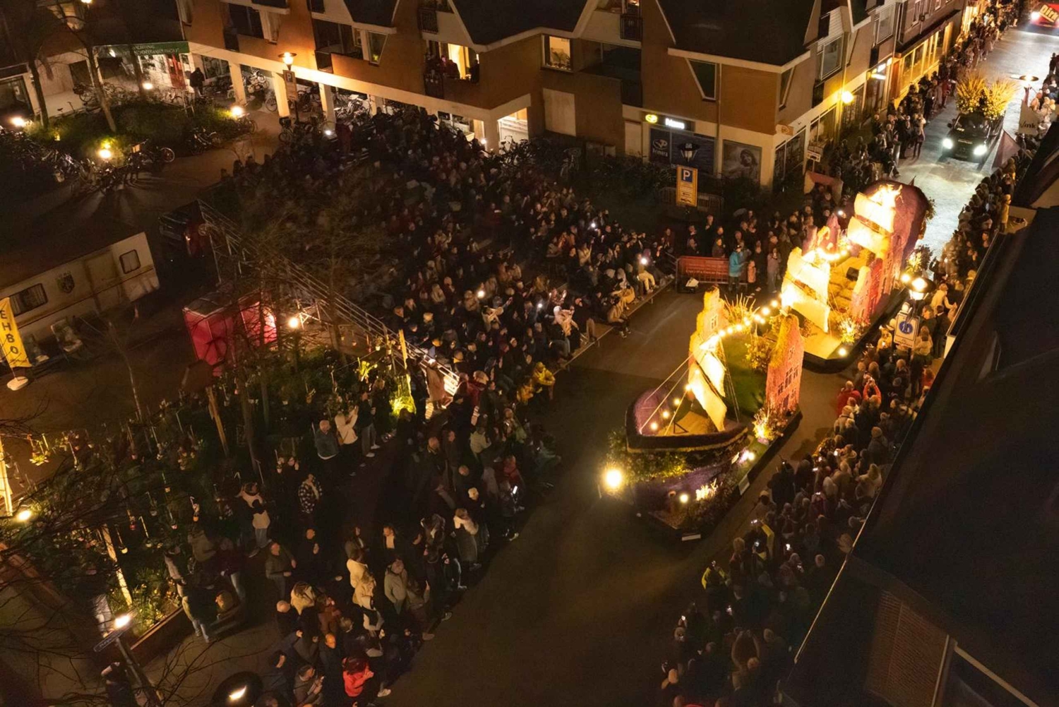 Вечером совершите короткую поездку в деревню Нордвейкерхаут, чтобы увидеть освещенный цветочный парад. Вы прибудете в центр деревни, где установлены роскошные платформы, которые можно полюбоваться вблизи.