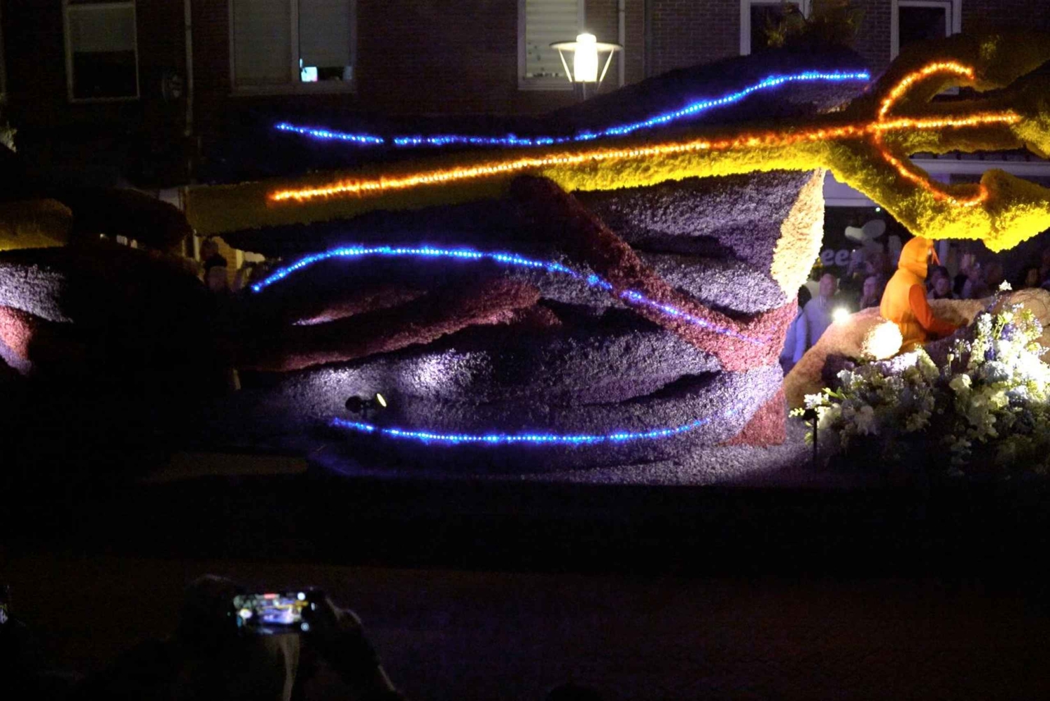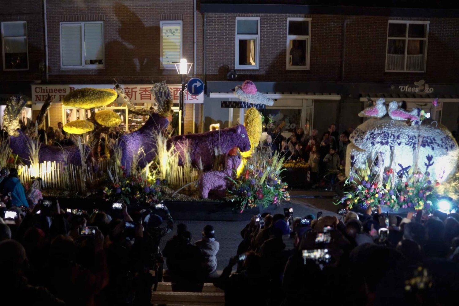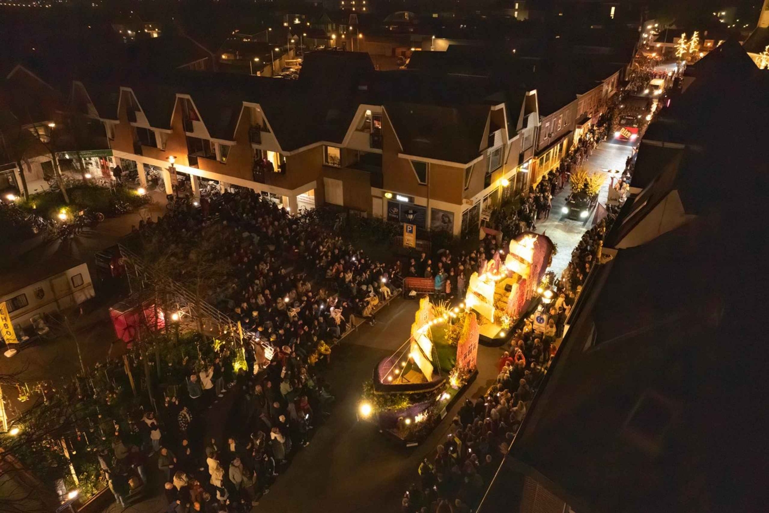 Вечером совершите короткую поездку в деревню Нордвейкерхаут, чтобы увидеть освещенный цветочный парад. Вы прибудете в центр деревни, где установлены роскошные платформы, которые можно полюбоваться вблизи.