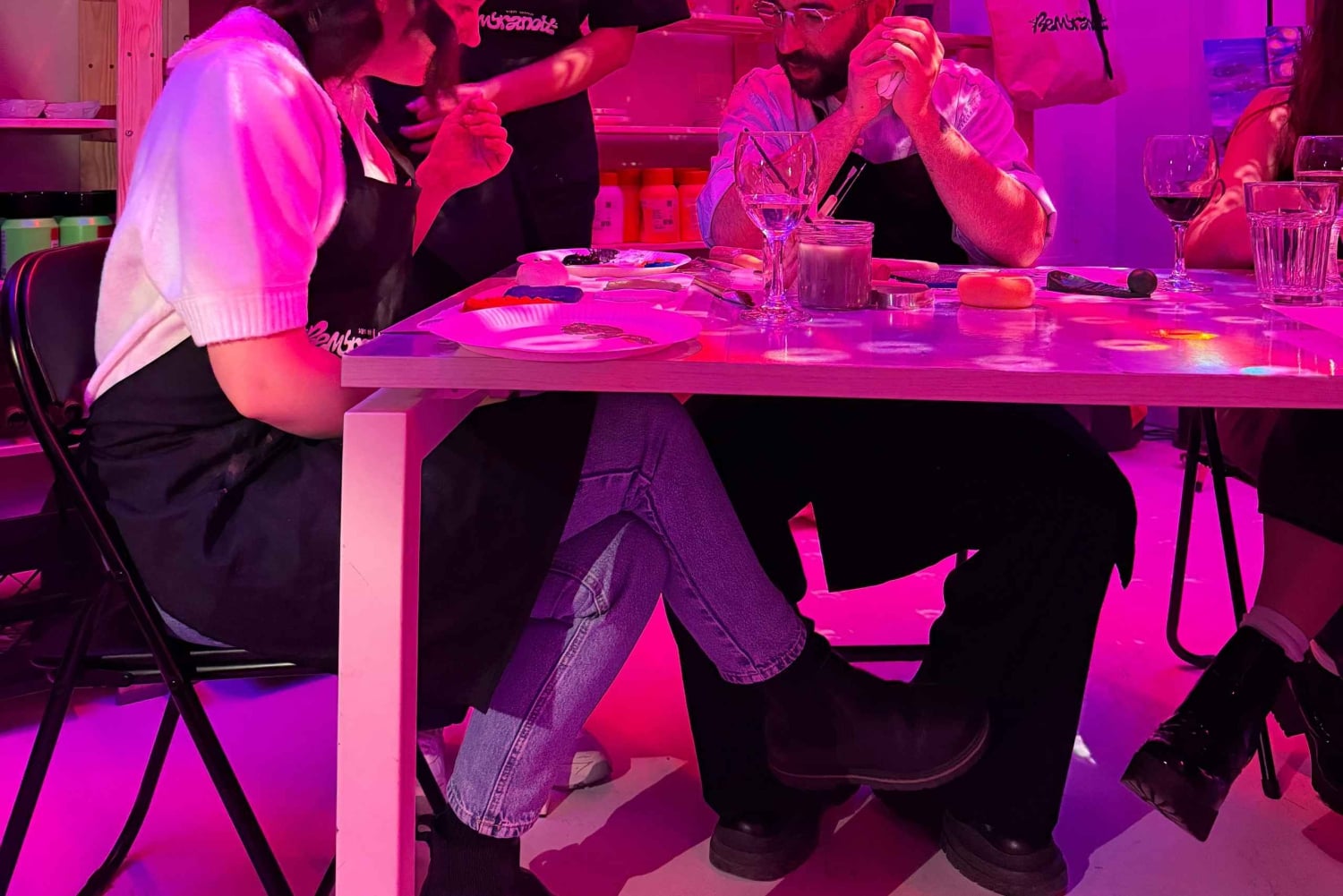 Sip & Clay Partay Amsterdam | Rembrandt van Wine Följ med oss på ett unikt och spännande evenemang där du kan släppa loss din inre konstnär medan du njuter av så många glas vin du vill, i en mycket unik miljö! Detta är inte en vanlig lerworkshop, utan en nostalgisk resa tillbaka till förskoletiden, fast denna gång för vuxna. Tänk discokula, neonljus, festlig musik och obegränsade drycker medan du släpper loss ditt inre barn och sätter händerna i lera. Det här är en kväll som du aldrig upplevt tidigare, där du lär känna dig själv och alla andra i rummet på ett helt nytt och kreativt sätt. Ingen tidigare erfarenhet krävs, våra duktiga lerkonstnärer guidar dig genom processen och ser till att även nybörjare kan skapa något fantastiskt. Visst, vinet hjälper också!