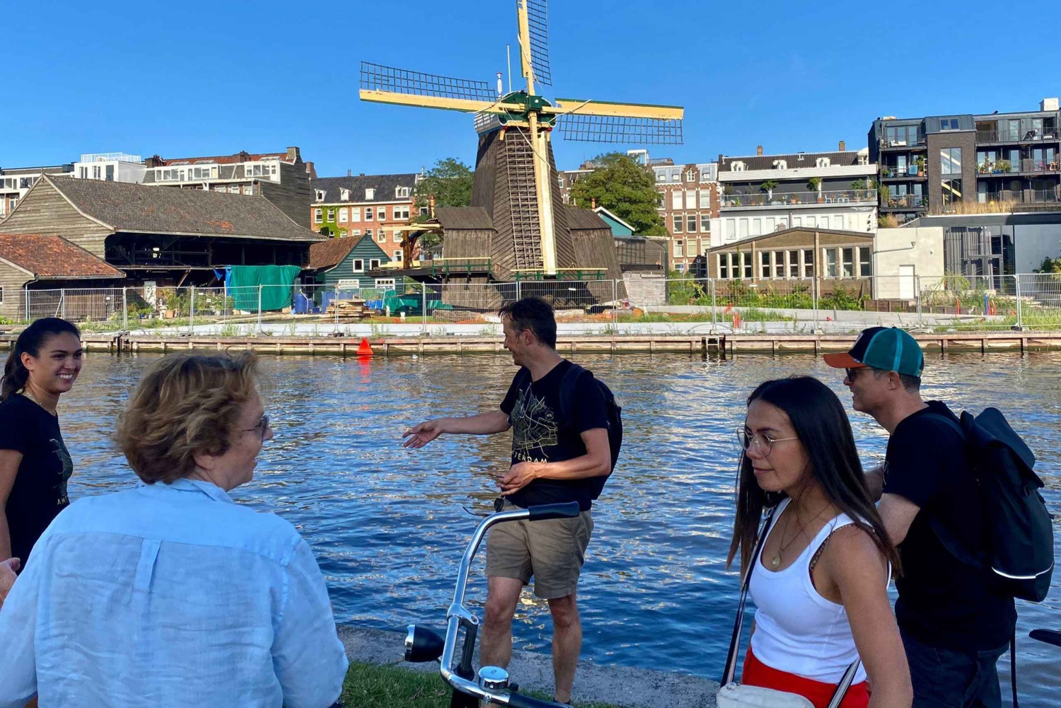 Den här cykelturen börjar nära Centralstationen, vilket är bekvämt om du använder allmän tur, eftersom alla huvudtransportmedel stannar där. När du har utrustats med en traditionell holländsk cykel trampar vi till den västra delen av staden och utforskar hamnområdet Prinseneiland från 1600-talet och arbetarklassområdet Jordaan. Båda områdena har förändrats mycket under de senaste decennierna när hipsters har flyttat in. Här kommer din guide att introducera dig till 'magnetfiske'. Vem vet vad du kan dra upp ur kanalen!