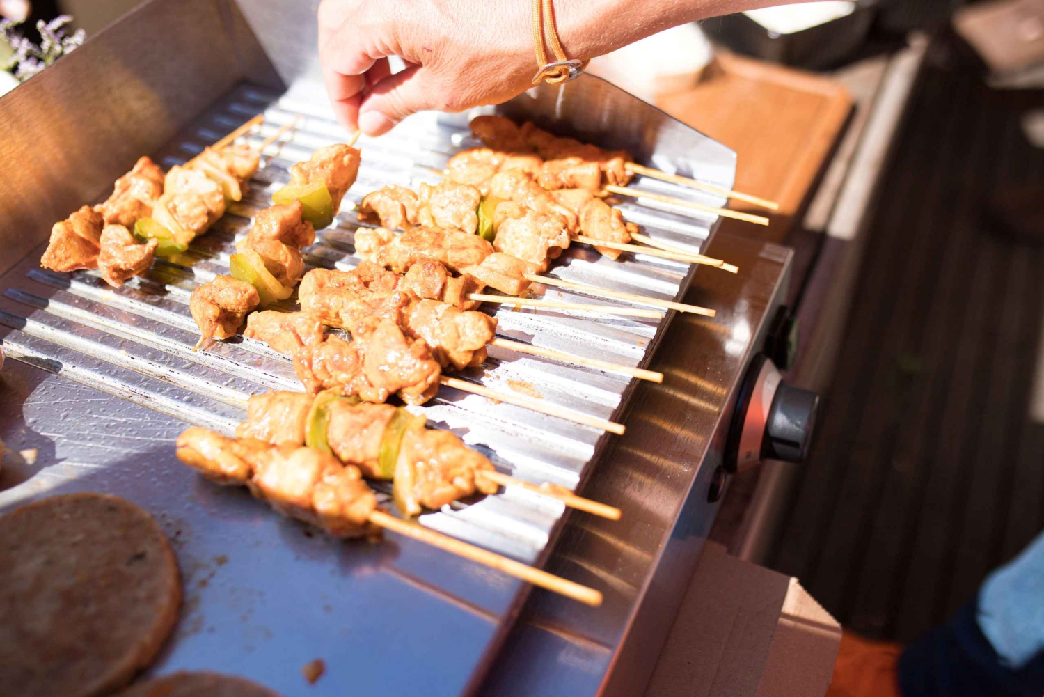 Pepparbiff, Shashlick, 2 grillspett kycklingsatay, korv, hamburgare Sallader: Rågrönsaker, potatis, ryss- och gurksallader Såser: Vitlök, cocktail, BBQ och satay Extra: Focacciabröd och örtsmör