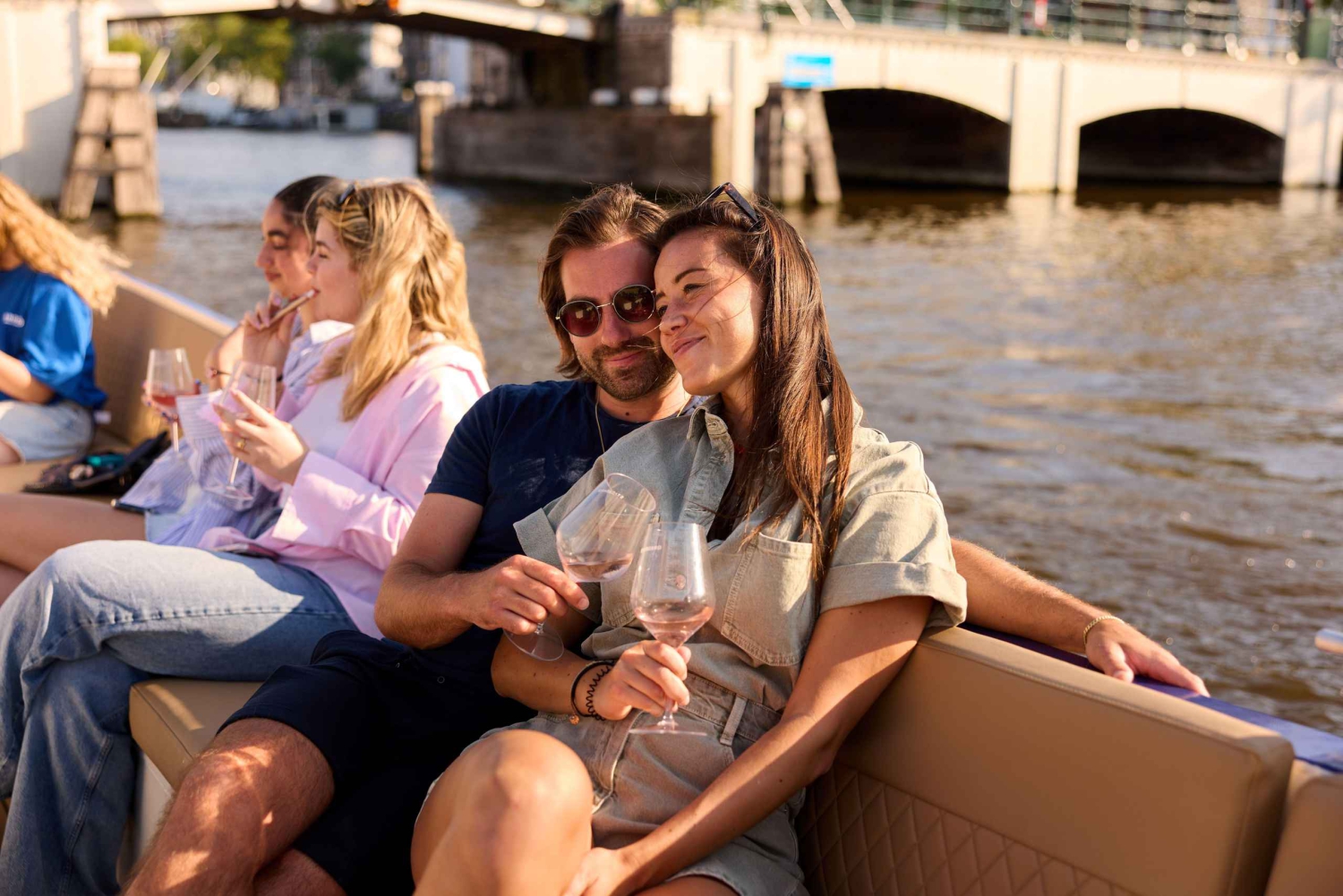 Cozy up on our intimate electric boat for an unforgettable Amsterdam canal cruise. Enjoy a drink from our fully-stocked bar, soak in VIP views, and immerse yourself in the stories of Amsterdam and Dutch lifestyle.
