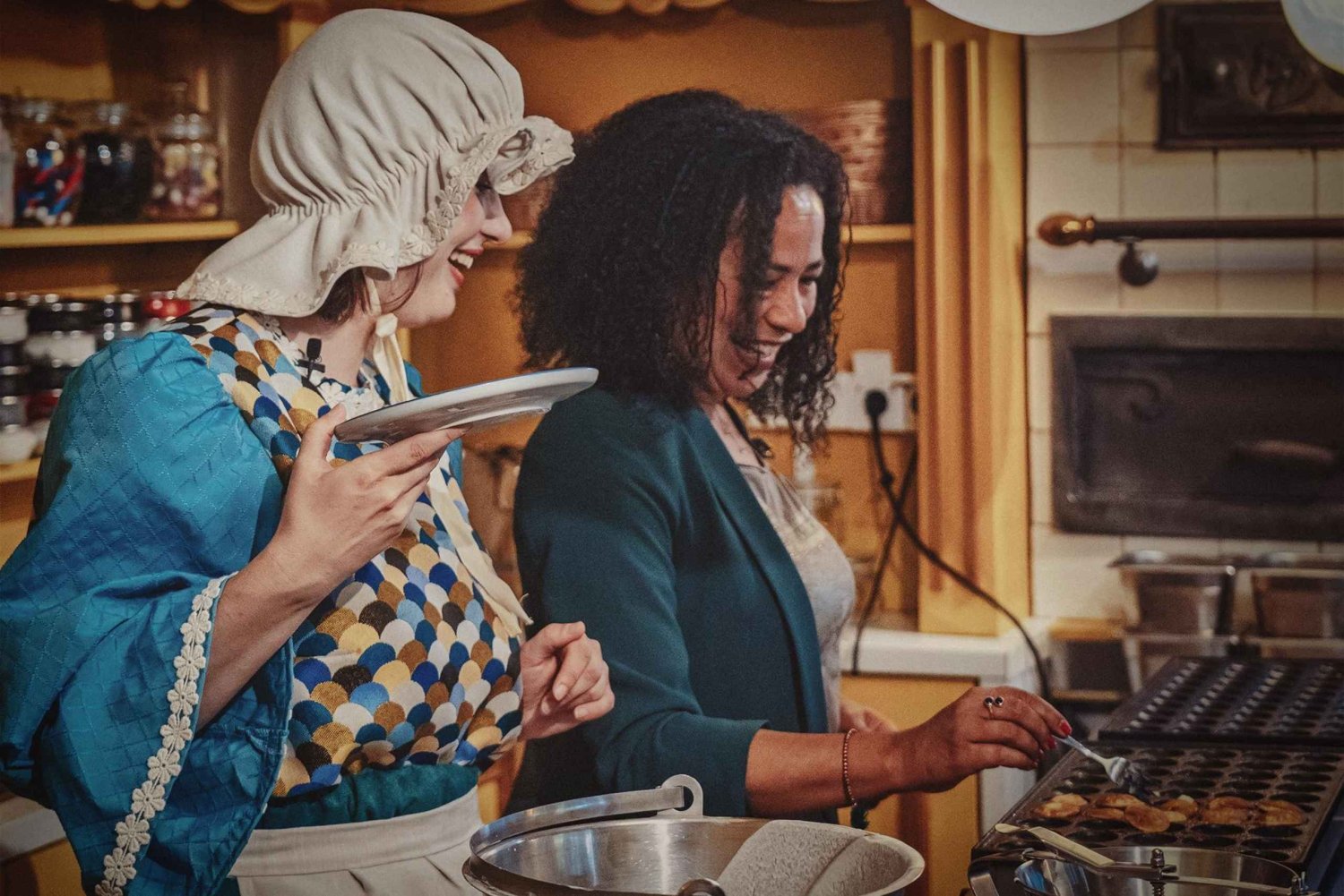 Step into a sizzling hour of mini pancakes (poffertjes), playful fun, and masters. Meet Mrs. Sweetcake, a cheerful lady who steps straight out of a painting by Anton Pieck. She’s come all the way from the 19th century to teach you how to bake the fluffiest, most delicious mini pancakes in Amsterdam.