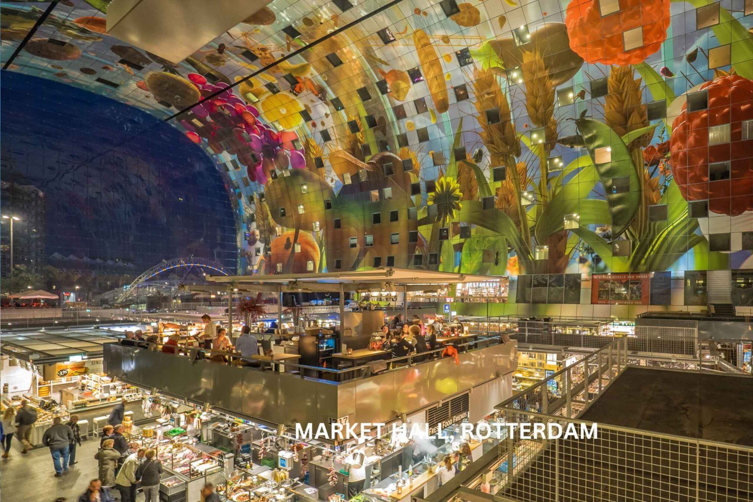 Modern building situated on one of the biggest Rotterdam’s Squares in the shape of horseshoe — closed market combined with living space and facilities, also nicknamed “The Sistine Chapel of Rotterdam”